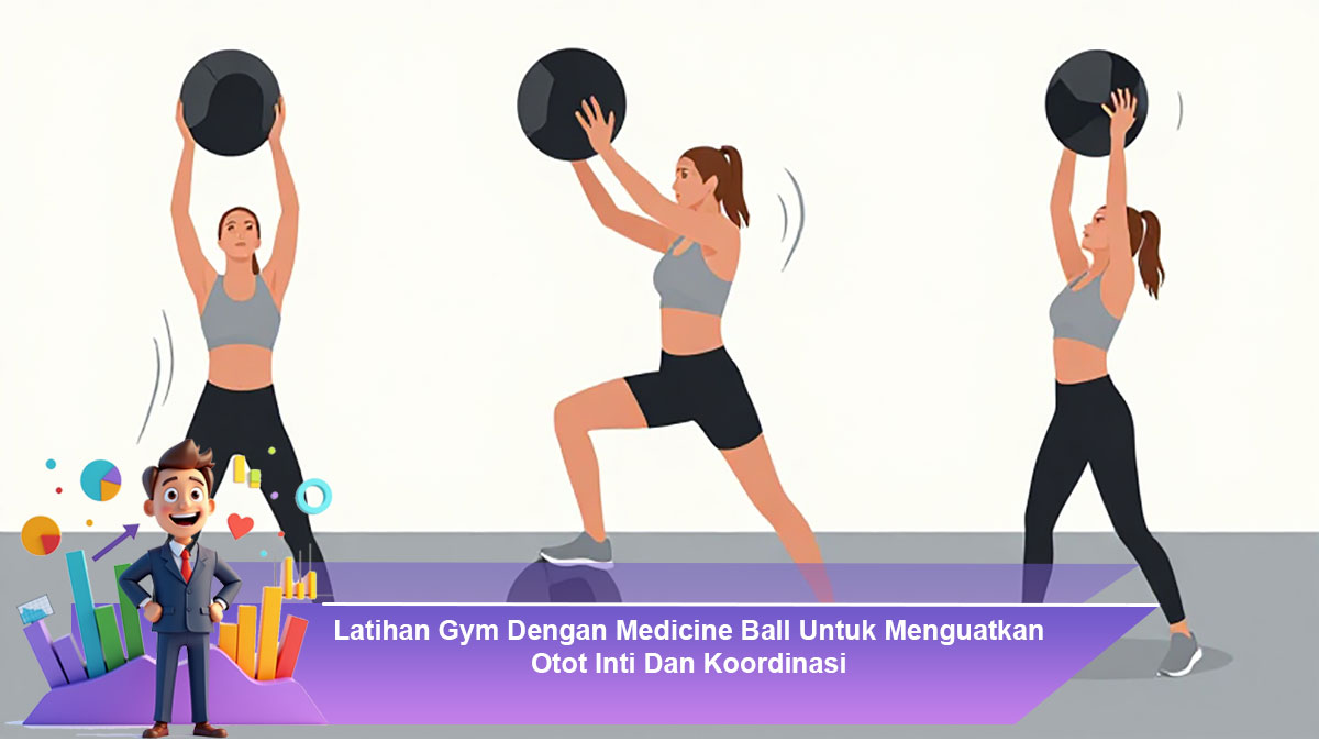 Ada beberapa latihan efektif yang bisa dilakukan di gym untuk membangun core dan koordinasi dengan medicine ball. Pertama, medicine ball Russian twist. Duduk dengan posisi kaki sedikit terangkat, lalu putar badan kanan kiri sambil memindahkan bola. Latihan ini kuat untuk melatih oblique dan kontrol pinggang. Kedua, medicine ball slam. Angkat bola di atas kepala lalu hantam ke lantai dengan tenaga. Gerakan ini melatih core, bahu, dan kekuatan eksplosif. Ketiga, medicine ball squat to press. Lakukan squat sambil memegang bola, lalu berdiri dan dorong bola ke atas. Ini melatih koordinasi antara kaki, core, dan lengan. Keempat, plank with medicine ball roll. Posisi plank dengan bola di bawah tangan, lalu gulirkan perlahan ke depan dan kembali. Gerakan ini sangat efektif untuk stabilitas core dan melatih kontrol tubuh. Kelima, wall throw atau lempar bola ke dinding. Latihan ini meningkatkan refleks, koordinasi mata-tangan, serta kekuatan rotasi tubuh.